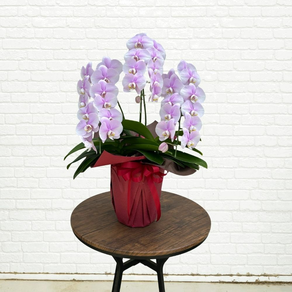 胡蝶蘭の商品は、ペーパーラッピングとリボンが標準仕様で付けております。 不要な場合など、ご希望がある場合には、[ご注文手続き]ページ内[通信欄]にご記入ください。