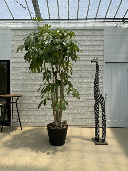 【ブラッサイア】 スタイリッシュな空間演出に。堂々たる姿の大きな観葉植物ブラッサイアが、オフィスグリーンに洗練と自然の躍動感をもたらします。