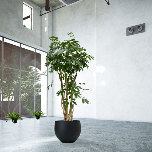 【ブラッサイア】 スタイリッシュな空間演出に。堂々たる姿の大きな観葉植物ブラッサイアが、オフィスグリーンに洗練と自然の躍動感をもたらします。
