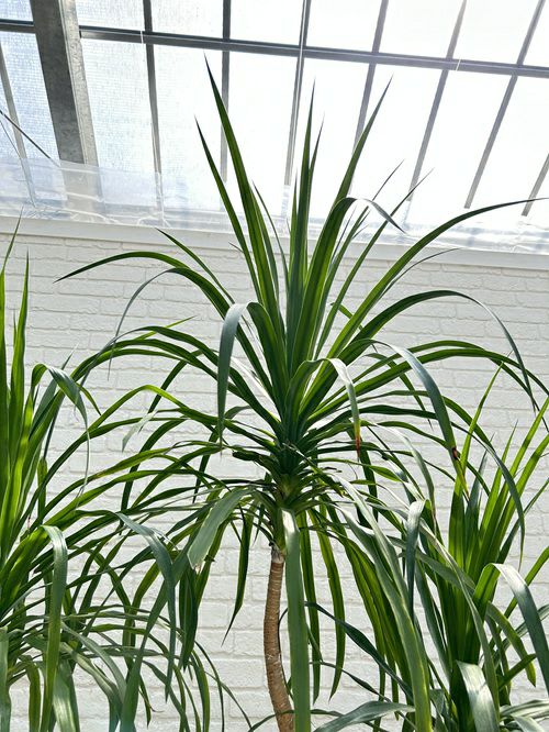 【ドラセナ・カンボジアーナ】 シャープな葉姿が印象的なカンボジアーナは、洗練された空間に映える大きな観葉植物。スタイリッシュなオフィスグリーンとして人気です。