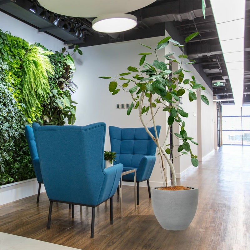 【フィカス・ベンガレンシス】 やわらかく丸みのある葉と美しい幹が魅力のフィカス・ベンガレンシス。自然な存在感で空間を引き立てる、大きな観葉植物としてオフィスグリーンにも最適です。