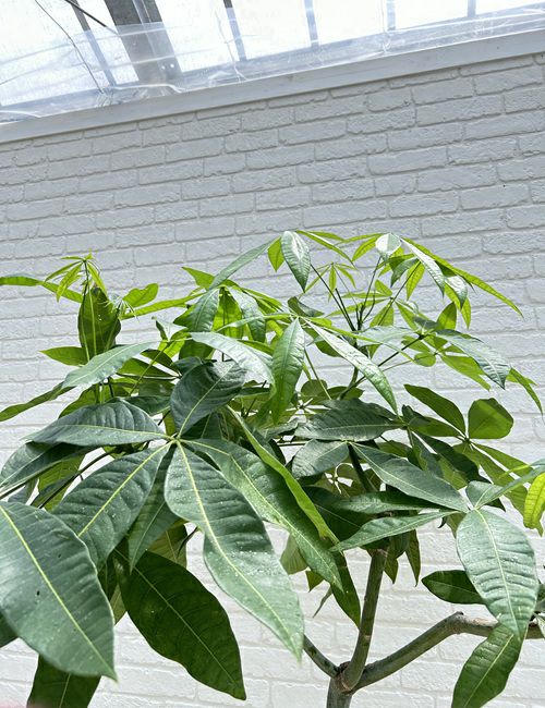 【パキラ】 手のひらのような葉が特徴のパキラは、丈夫で育てやすい大きな観葉植物。明るく爽やかな印象で、オフィスグリーンとしても人気です。