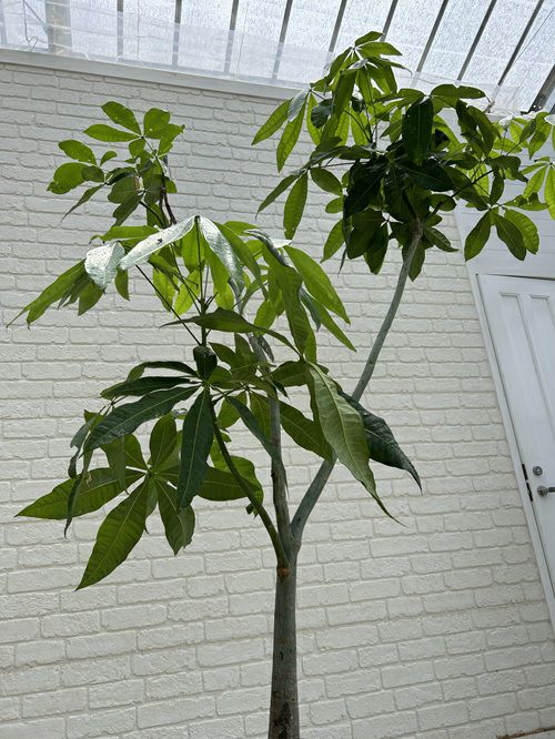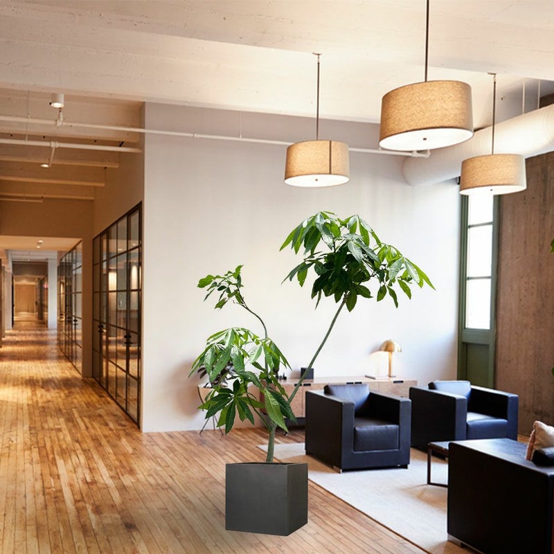 【パキラ】 手のひらのような葉が特徴のパキラは、丈夫で育てやすい大きな観葉植物。明るく爽やかな印象で、オフィスグリーンとしても人気です。
