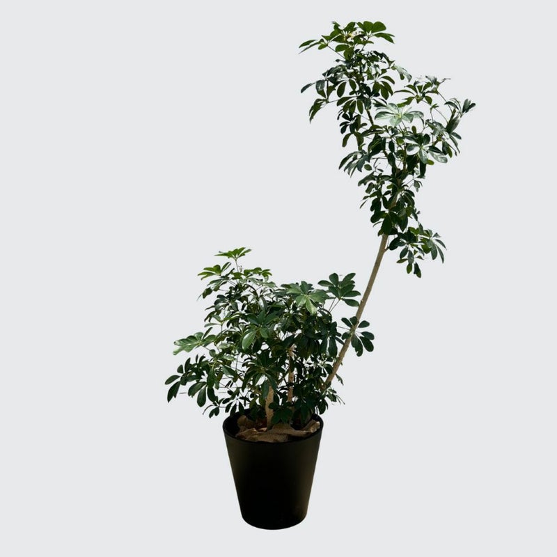 【シェフレラ】 丸みのある葉が放射状に広がるシェフレラは、親しみやすく爽やかな印象の大きな観葉植物。丈夫で育てやすく、オフィスグリーンとしても人気があります。空間に自然な癒しを与える、グリーン初心者にもおすすめの一鉢です。