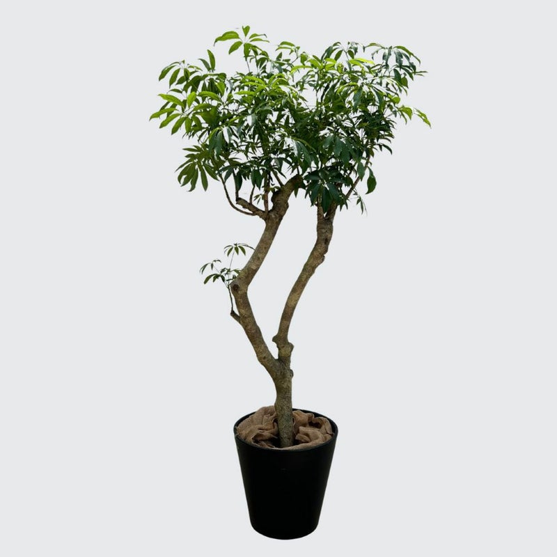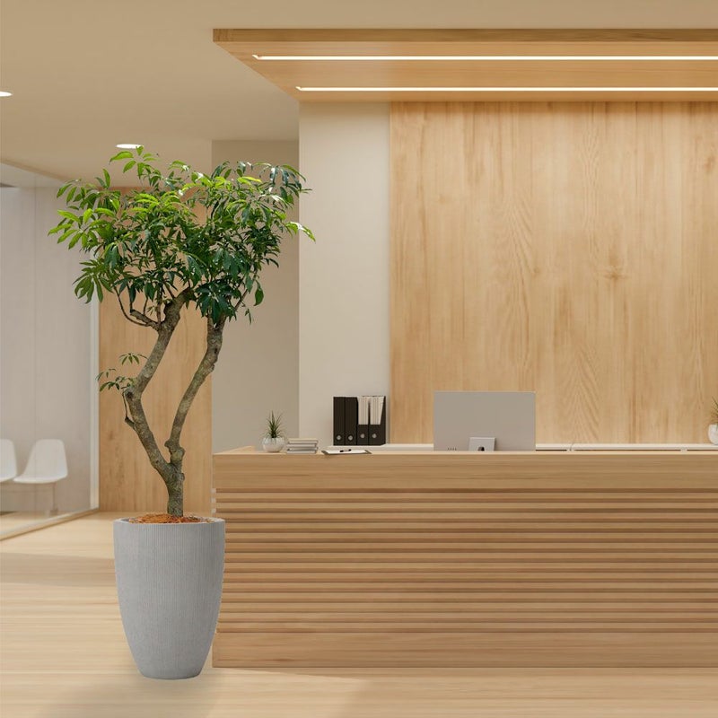 【シェフレラ】 丸みのある葉が放射状に広がるシェフレラは、親しみやすく爽やかな印象の大きな観葉植物。丈夫で育てやすく、オフィスグリーンとしても人気があります。空間に自然な癒しを与える、グリーン初心者にもおすすめの一鉢です。