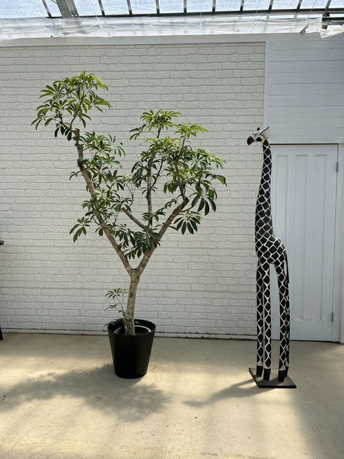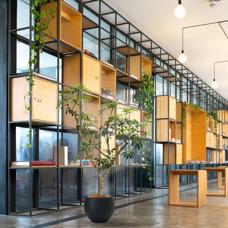 【シェフレラ】 丸みのある葉が放射状に広がるシェフレラは、親しみやすく爽やかな印象の大きな観葉植物。丈夫で育てやすく、オフィスグリーンとしても人気があります。空間に自然な癒しを与える、グリーン初心者にもおすすめの一鉢です。