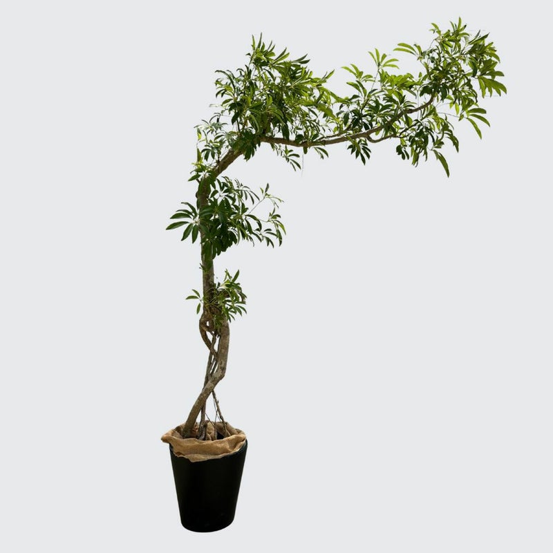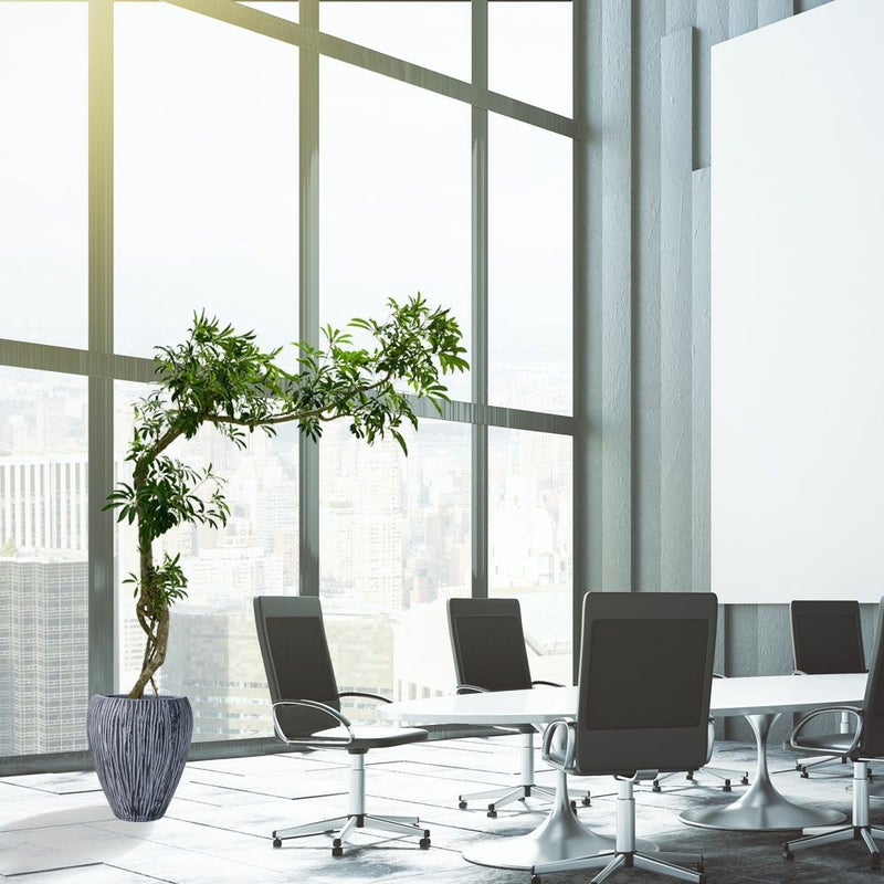 【シェフレラ】 丸みのある葉が放射状に広がるシェフレラは、親しみやすく爽やかな印象の大きな観葉植物。丈夫で育てやすく、オフィスグリーンとしても人気があります。空間に自然な癒しを与える、グリーン初心者にもおすすめの一鉢です。